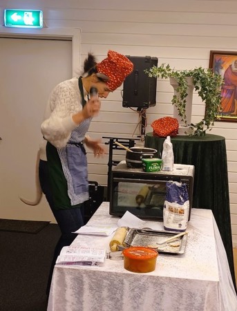 Barna sitter som tente lys og er helt med i historien, noen husker til og med hvordan det gikk i fjor. Hvor mye mel får de i fanget denne gangen. Presisjonens kunst er tilforlatelig utført. Pepperet sikrer høylytt responsen på bakerguttens innsats.