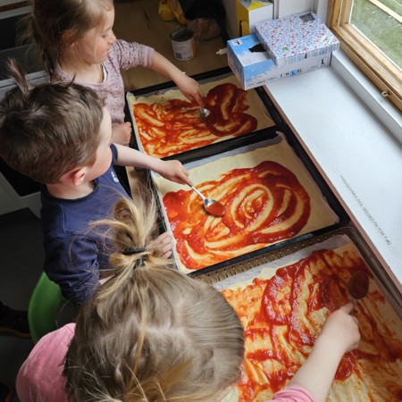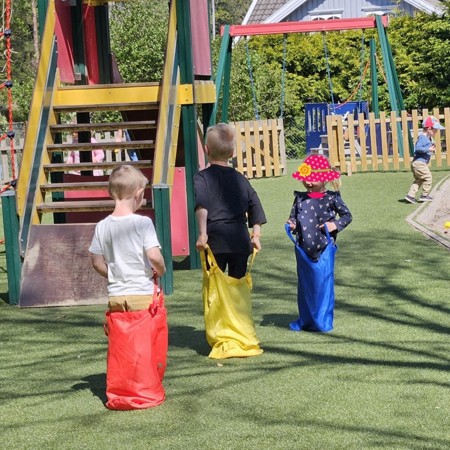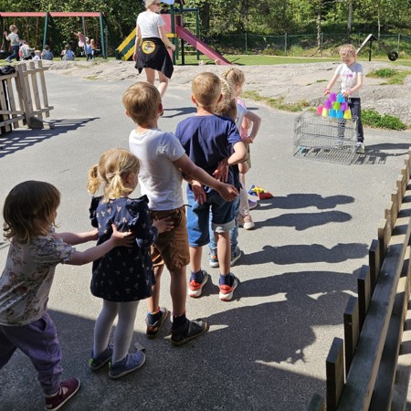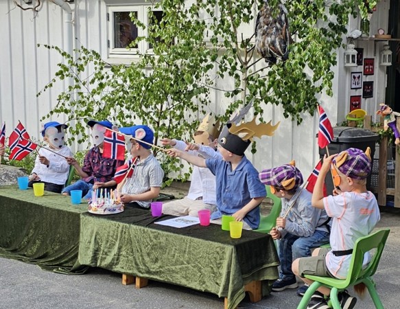 17. maiferingen dagen før dagen, med tog, is, lek og spill. Frigjøringsdagen 8. mai med tur til krigsminnesmerket, dager på lekeplassen, utflukter, sette og ta opp teine i Skoletjern, togtur og bytur, sykkelbanen og skolebesøk. Mange opplevelser for store og små. Hver dag med lek, utforsking og fantasi.
