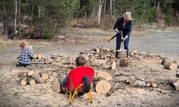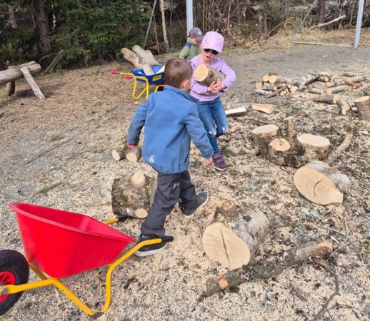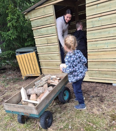 Her får barna kjenne på kreftene sine og finne ut av sin kapasitet. De gir på av egen interesse og nysgjerrighet på bakgrunn av den aktiviteten som den voksne starter. Her blir det orden på området, og så flott som det blir i vedbua som vaktmesteren har skaffet oss.