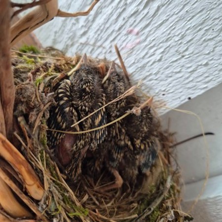 En nyinflyttet fluesnapperfamilie ved inngangen til barnehagen. Her måtte vi ta hensyn og holde avstand, så fuglemamma og fuglepappe kunne mate sine små fugleunger.