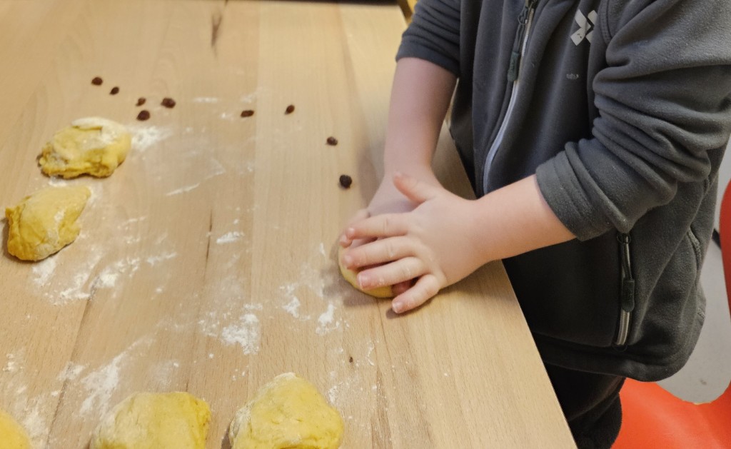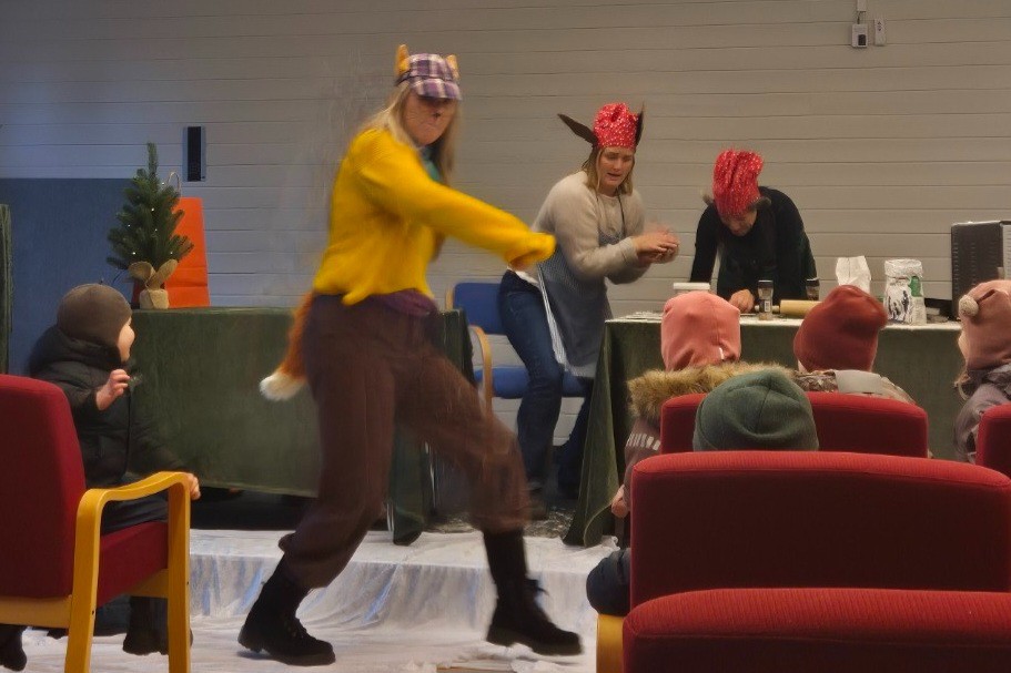 Dette året forsøkte vi oss på dubbing til historien fra hakkebakkeskogen, barna fulgte godt med og ventet spent på bakerguttens håndtering av mel og pepper.