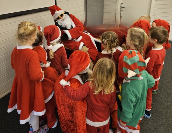 Dagen starter med "nisserokkemusikk" og dans, mens det ventes på at nissen viser seg. Nissen kommer gående fra parkeringsplassen og inn fra nødutgangen. Noen er spente og ivrige etter å gå nissen i møte, andre holdt seg mer i bakgrunnen litt småredde, og får støtte av en voksen for trygghet. Alle får en forundringspose av nissen.